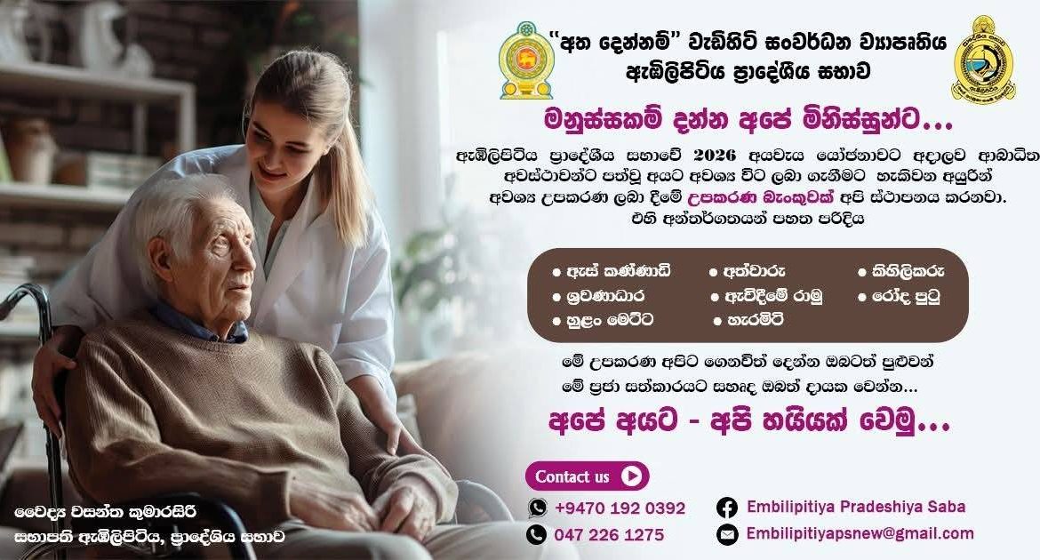 වෛද්ය වසන්ත කුමාරසිරි මැතිතුමන්ගේ සංකල්පයකට අනුව ක්රියාත්මක කෙරෙන අත දෙන්නම් වැඩිහිටි සංවර්ධන ව්යාපෘතිය යටතේ,